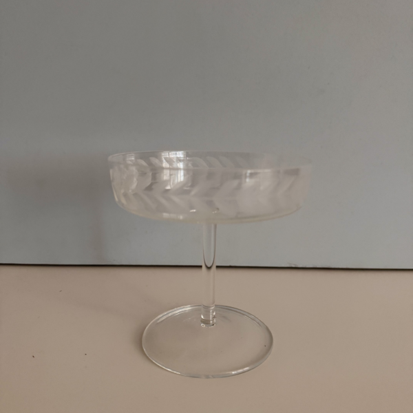 Champagnerschalen aus Glas im klassischen Design, geeignet für stilvolle Tischkonzepte bei Hochzeiten, Events und Empfängen. Die flache, breite Form verleiht der Tischdekoration eine besondere Leichtigkeit und setzt dezente Akzente auf der gedeckten Tafel.