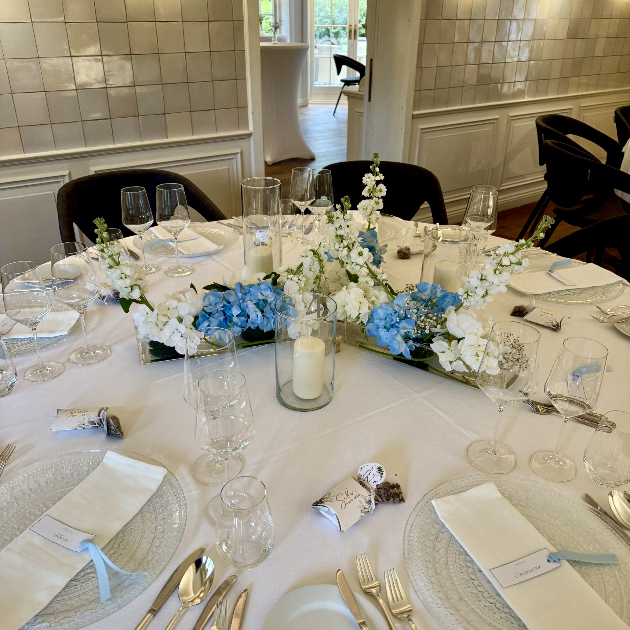Tischdekoration, lange Tafeln, Floristik, Eventstyling